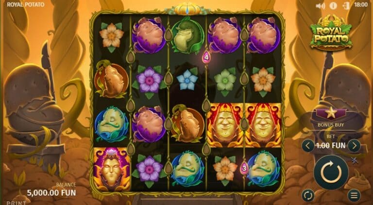 Игровой автомат Royal Potato предлагает несколько уровней символов, где символы персонажей среднего уровня выплачивают от 6 до 12,5 раз больше вашей ставки за выигрыш 5 одинаковых символов. Символы короля и королевы высшего уровня платят в 50 и 25 раз больше вашей ставки соответственно. Также в игре присутствует функция SuperSpinners и функция Royal Levy.